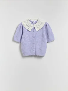 Reserved - Kardigan z ozdobnym kołnierzem - lawendowy