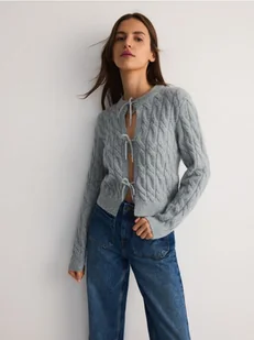 Reserved - Kardigan z ozdobnym wiązaniem - jasnozielony