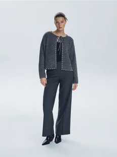 Reserved - Kardigan z ozdobnymi brzegami - ciemnoszary