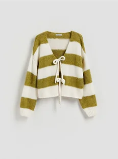 Reserved - Kardigan z wiązaniem - oliwkowy
