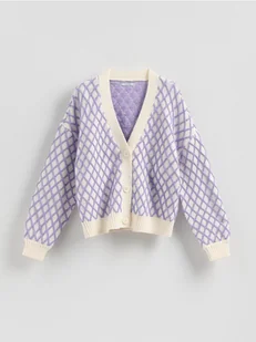 Kardigan o swobodnym fasonie, wykonany z dzianiny.