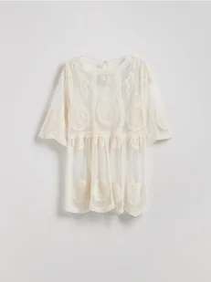 Reserved - Narzutka plażowa z wiązaniem - kremowy