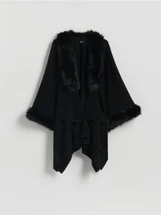 Reserved - Ponczo ze sztucznym futerkiem - czarny