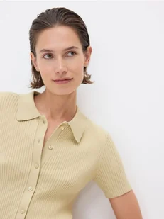 Reserved - Prążkowana bluzka polo - jasnozielony