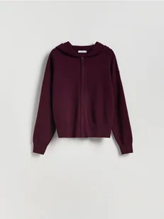 Reserved - Rozpinany sweter z kapturem - ciemnofioletowy