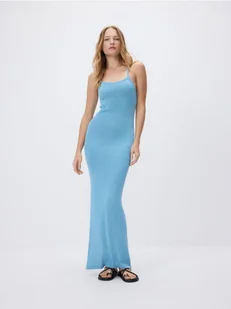 Reserved - Sukienka maxi z metaliczną nicią - jasnoturkusowy