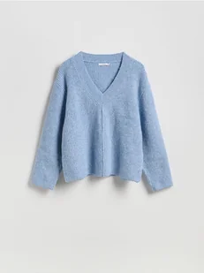 Sweter o swobodnym kroju, wykonany z dzianiny.