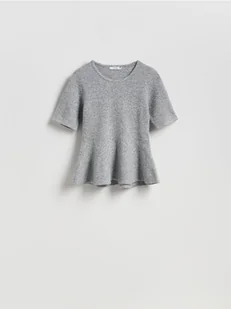 Sweter o prostym kroju, wykonany z dzianiny z domieszką wełny.