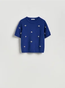 Reserved - Sweter z błyszczącą aplikacją - niebieski