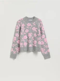 Sweter o swobodnym fasonie, wykonany z dzianiny z domieszką wełny.