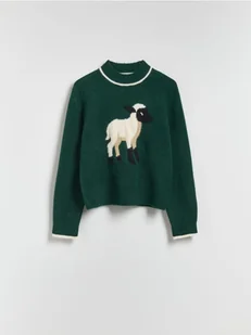 Sweter o prostym kroju, wykonany z dzianiny domieszką wełny.