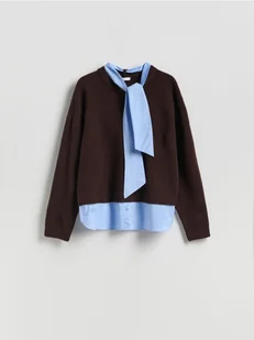 Reserved - Sweter z imitacją koszuli - ciemnobrązowy