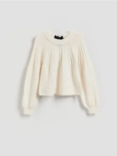 Reserved - Sweter z kokardką z tyłu - złamana biel