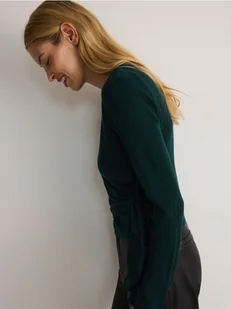 Reserved - Sweter z kopertowym wiązaniem - ciemnozielony