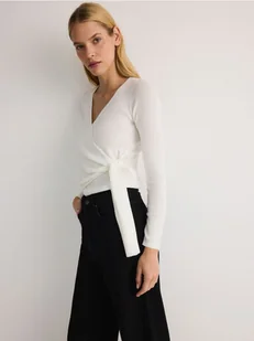 Reserved - Sweter z kopertowym wiązaniem - złamana biel