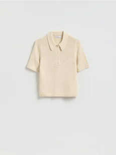 Reserved - Sweter z krótkim rękawem - kremowy