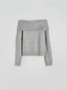 Sweter o prsotym kroju, wykonany z dzianiny z domieszką wełny.