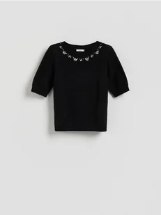 Reserved - Sweter z ozdobną aplikacją - czarny