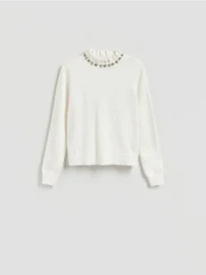 Reserved - Sweter z ozdobną aplikacją - kremowy