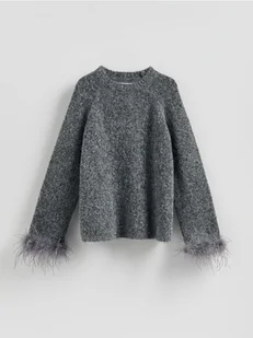 Sweter o swobodnym kroju, wykonany z dzianiny z dodatkiem wełny i domieszką alpaki.