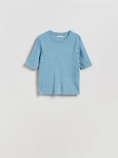 Reserved - Sweter z ozdobnym splotem - jasnoturkusowy