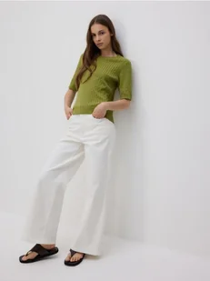 Reserved - Sweter z ozdobnym splotem - oliwkowy