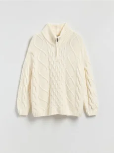Reserved - Sweter z ozdobnym splotem - złamana biel