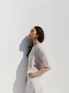 Sweter o prostym kroju, wykonany z dzianiny z bawełną.