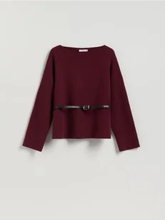 Sweter o prostym kroju, wykonany z dzianiny z domieszką wełny.