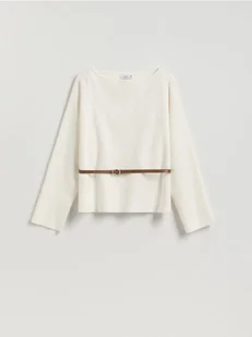Sweter o prostym kroju, wykonany z dzianiny z domieszką wełny.