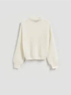Sweter o regularnym kroju, wykonany z dzianiny z wełną i dodatkiem moheru.