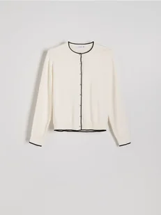 Reserved - Kardigan z kontrastową lamówką - kremowy