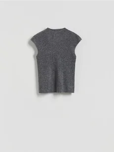 Bezrękawnik o dopasowanym kroju, wykonany z dzianiny z wełną.