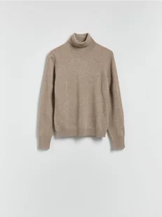 Sweter o prostym kroju, wykonany z wełnianej dzianiny.