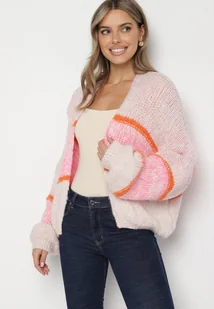 Różowy Niezapinany Kardigan z Domieszką Wełny w Paski Argulia