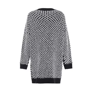 Sidona Damski mały karo karo karo z dużym dekoltem w serek i długim kardiganem, poliester z recyklingu, czarno-biały, rozmiar M/L, czarny biały, M