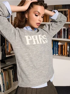 Sinsay - Sweter z napisem - szary - długie rękawy,z napisem,okrągły dekolt