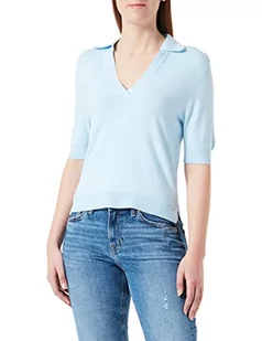 s.Oliver Damski sweter z kołnierzem polo, krótki rękaw, niebieski, 42