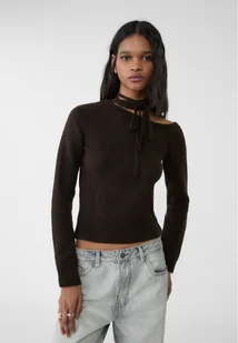 Stradivarius Asymetryczny sweter z wiązaniem Brązowy XS
