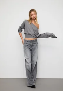 Stradivarius Dzianinowy sweter z dekoltem łódka Ciemnoszary XL