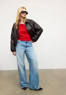 Stradivarius Asymetryczny sweter z dzianiny Czerwony M