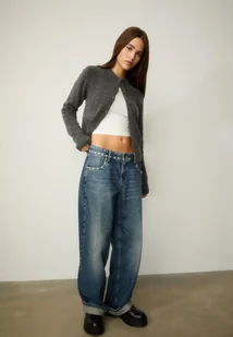 Stradivarius Kardigan z dzianiny z guzikami Ciemnoszary M