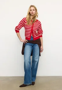 Stradivarius Kardigan z dzianiny z guzikami i raglanowymi rękawami Czerwony L
