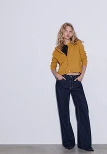Stradivarius Kardigan z dzianiny z guzikami o miękkim dotyku Musztardowy L