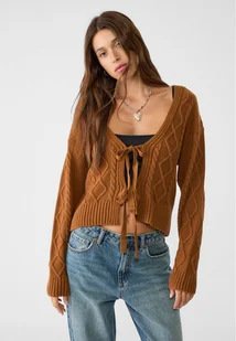 Stradivarius Kardigan ze splotem warkoczowym i wiązaniami Jasny wielbłądzi XS