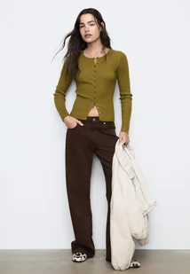 Stradivarius Kurtka z dzianiny prążkowanej na guziki Zielony XXS
