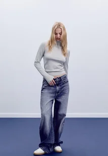 Sweter z gładkiej dzianiny ze stójką wykończoną wywinięciem i długim rękawem. Dostępny w różnych kolorach.