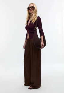 Stradivarius Prążkowany kardigan z guzikami Fioletowy M