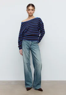 Stradivarius Sweter z dzianiny z dekoltem w łódkę, miękki w dotyku Morski XL