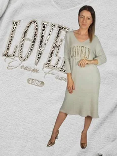 Sukienka Sweterkowa Ciepła Długi Sweter beż alpaka złoto napis 46 48 3XL 4XL Klasyczna i elegancka Sukienka z miękkiej tkaniny premium - poczuj luksus na swo...